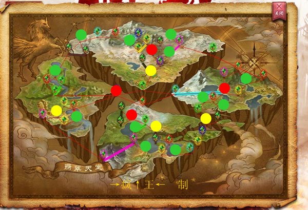 一张神域大地图总共是60座城市,而60座城市又分布为4个区域,也就是东南西北四部,也可以说,每个区域是15个城池。而图上,共有20张地图被我点上圈圈。