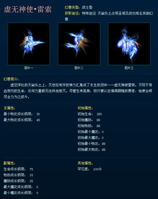 如果说,魔域现在最让我感觉到神奇的宠物有几种,虚无神使便是名列第二的神一般存在的宠物。仅仅是他的属性,就让人大呼犀利,先来看看属性。