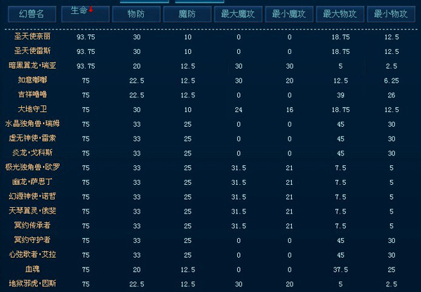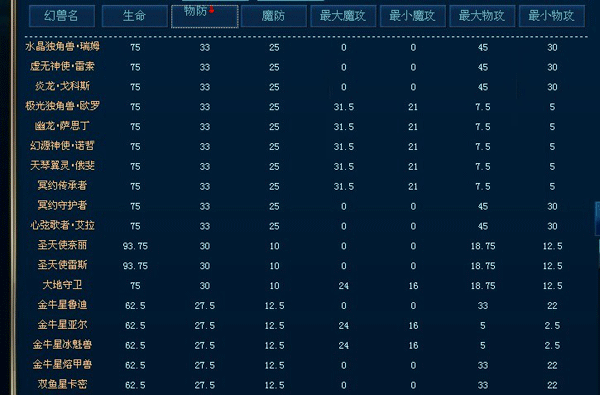 估计大家看属性没有什么感觉,许多人对属性的数据不感冒。因为还要计算数据嫌麻烦,也就看不出这幻兽的犀利之处了。那再贴出幻兽属性对比排行来让大家看看。