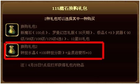 另外还有花115点换购10个金质启蒙币的选项,因为折扣比较高,个人建议购买,金质启蒙币在魔石商店一个卖84点,是拿来养副属性的,后面肯定会用到。