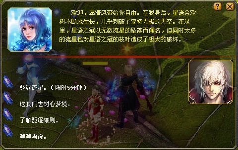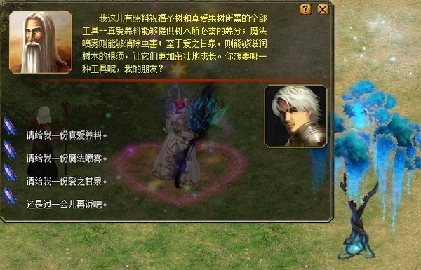 花冠传情和精灵之光这两个任务就不多说了,之前就有,只不过以前两个任务每天可以做三次,现在每天只能做一次了(呵呵,也轻松不少),而且现在奖励换成了80个情缘石。