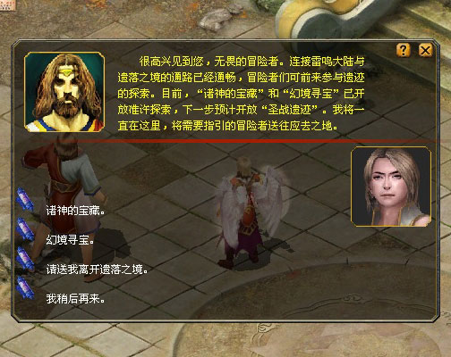 进入遗落之境后,冒险者们第一个看到的将是传送使葛林。这位热心的人儿将为你们指引道路,跟他交谈后,他将把你们送往神陆幻境使者桑纳的身边。