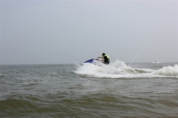 这边还在挖坑,海里大家倒是闹了起来了。哇靠,摩托艇啊,居然不叫上我。