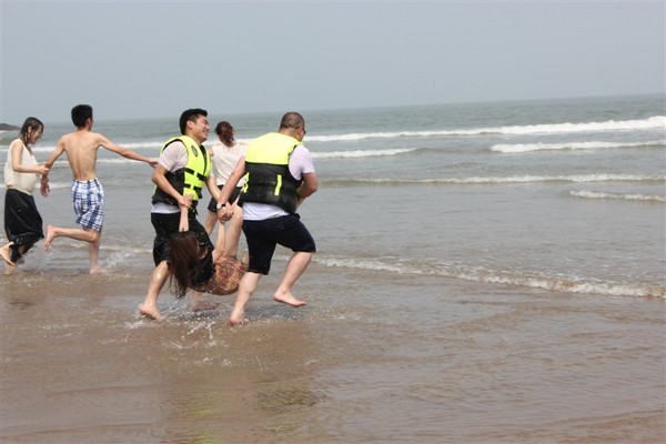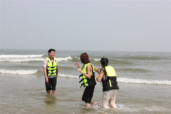 要坐摩托艇,都要下海。男孩子倒没事,都买了大裤衩。女孩子都没买泳衣啊。话说独乐乐不如众乐乐。女孩子不好意思下海怎么办?连衣带人丢海里去!湿了就无所谓啦!