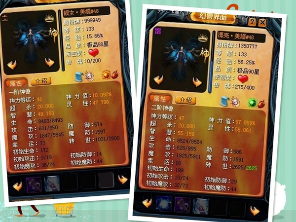 (两头圣女,一头58星5545大魔攻、一头90星5911大魔攻;很多玩家都知道,圣女跟孤星跟魔攻子女型幻兽一样,都是魔域成长极限最高的三巨头,而圣女作为亡灵法师的专属宠,更能发挥作用,两头圣女,魅丗ぺ慕云是专用于副本的,因为单从攻击来看,配置上59点的装备,加个勇气,在9星中有15W的攻击属于正常)