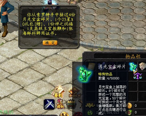 | 任务奖励 | 海鲜料理得分榜第一名:4份月光宝盒碎片、1个25星XO礼包[赠]、1份神之祝福、1支高级王室教鞭、1张海鲜科聘用证书 海鲜料理得分榜第二名:2份月光宝盒碎片、1个19星XO礼包[赠]、1份神之祝福、1支初级王室教鞭、1张海鲜科聘用证书 海鲜料理得分榜第三名:1份月光宝盒碎片、1份12星XO礼包[赠]、1份神之祝福、1张海鲜科用证书 ![]() 菲兰书签 说明:为了纪念纳邦德尔学院烹饪分校第一任院长所特意印制的书签,由于其特殊的意义,被选用作招聘会的奖励,点击右键导航至索罗特处。 ![]() 初级王室教鞭 说明:卡诺萨王室特别赠予的教鞭,每天可使用1次,使用后可获得1小时双倍经验效果,并获得1小时神之祝福。 ![]() 高级王室教鞭 说明:卡诺萨王室特别赠予的教鞭,每天可使用1次,使用后可获得1小时三倍经验效果,并获得1小时神之祝福。 ![]() 海鲜科聘用证书 说明:纳邦德尔烹饪学院的聘用证书,这是你竞聘成功的唯一证明,也是你烹饪能力的表现,快使用它,让所有人都仰视你吧,点击右键使用。 |