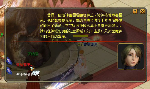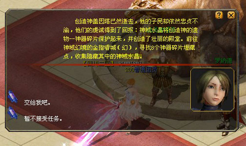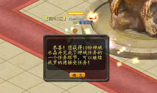 罗纳德告诉你,神域水晶分散在神域幻境的各个角落,你可以通过击败各个城市的魔怪获得或者前往野外收集。