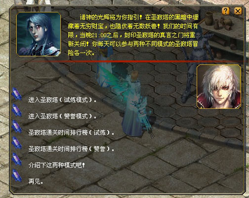 | 名字:圣寂塔使者•莉迪亚 位置:卡诺萨城(310,398) 作用:任务介绍及传送 名字:圣寂塔长老•休杰克 位置:圣寂塔一层(685 ,681)、圣寂塔二层(623 ,603)、圣寂塔三层(526 ,544)、圣寂塔四层(444 ,463)、圣寂塔五层(362 ,383)、圣寂塔六层(271,293)、圣寂塔七层(202,206)、圣寂塔八层(117,089) 作用:任务奖励和传送 | |