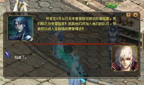 所有在9月30日后未曾登录过《魔域》的冒险者均为老玩家。加入以老玩家为队长的队伍,你将可以进入圣寂塔的赞誉模式。