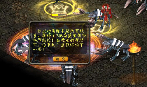 消灭你所在层的所有妖兽,可在圣寂塔长老休杰克处领取奖励,并进入下一层(当前为第8层时则完成本次冒险)。如果你能在30秒内消灭所有妖兽,将可获得2倍的丰厚奖励。这是对能力卓越的冒险者的嘉奖!