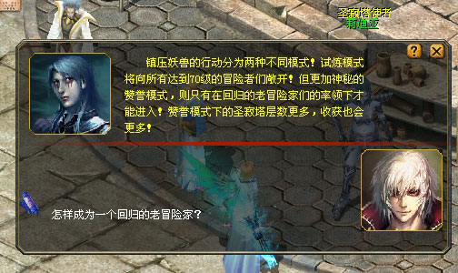 所有在9月30日后未曾登录过《魔域》的冒险者均为老玩家。加入以老玩家为队长的队伍,你将可以进入圣寂塔的赞誉模式。