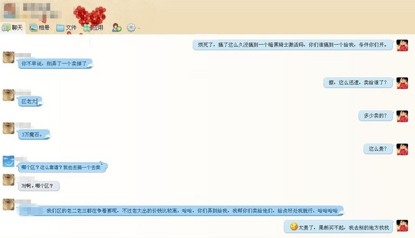 这群里一个人的激活码卖给群老大既然卖了30000魔石,果断买不起,撤退。