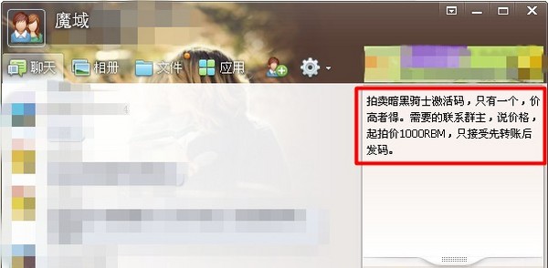 这个群,倒是有一个,可是只有群主一个人有,还拍卖,起价1000元,至于么?玩个游戏而已。拍卖截图如下: