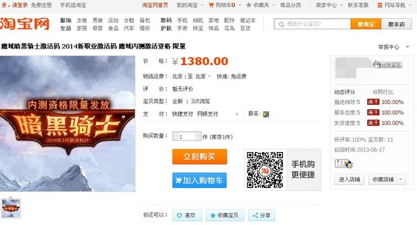 炒到1380人民币!魔域暗黑骑士内测一码难求 !