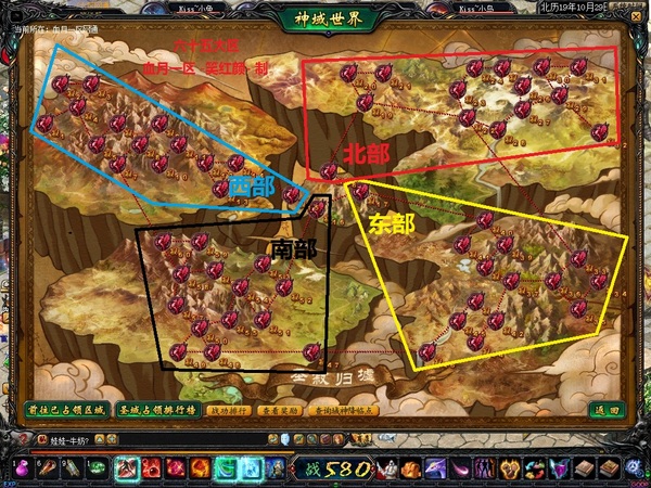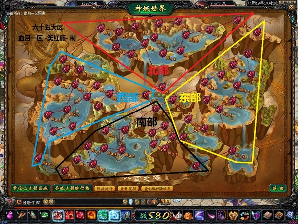 下面是圣迹归墟的东西南北具体的分部,其中黄色是东部,蓝色是西部,黑色是南部,红色是北部(如果你觉得还可以请点图片另存为,或者是收藏本页)