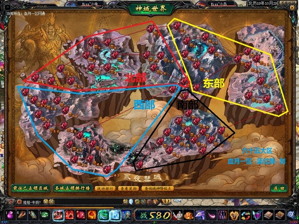 最后是永夜禁域的东西南北具体的分部,其中黄色是东部,蓝色是西部,黑色是南部,红色是北部(如果你觉得还可以请点图片另存为,或者是收藏本页)