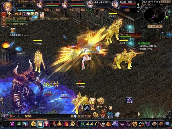 第一关,前面的打法跟其他是一样的。到了开四龙骑的时候,先把小怪清理,然后把守护团放出来,如图,再去把四龙骑印出来打,注:【因为守护团有四只马,这样马儿咬怪物的攻击都有1w以上,再加上人物的攻击就很完美了】龙骑本身防御高,不怕小怪爆炸那些,为了安全起见,最好是把龙骑一个一个引出来打,技能可以用神技能的炽魂枪,加大飞龙枪葬魂,没有体力的时候就用这个炽魂枪,因为炽魂枪是不消耗人物体力的,来,一起攻击boss吧。