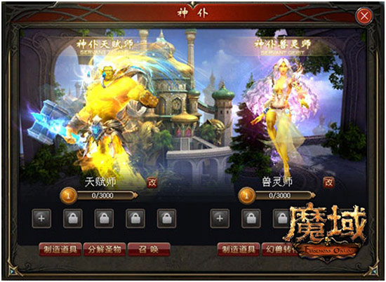 自《魔域》推出众神归来资料片以来,彻底将亚特大陆上的人类英雄变成了“神”,这堪称魔域历史上最大的改革。如今,各位成神的英雄豪杰们,终于可以拥有一个神的专属仆人了!神仆将忠心地履行神的旨意,帮助英雄开启幻兽天赋、分解幻兽及道具,让人物在制造灵药和圣兽魔晶养成上有如神助。